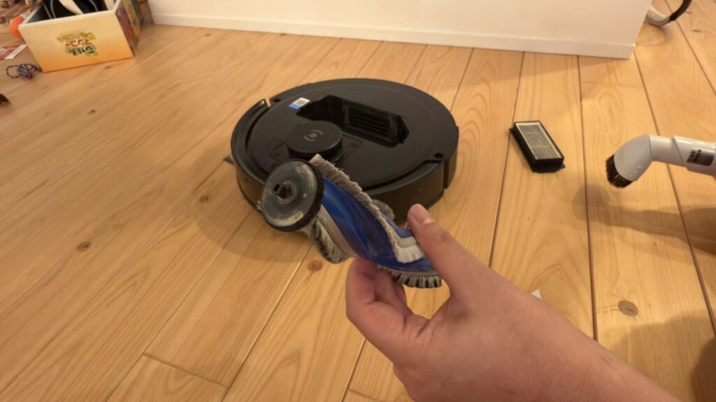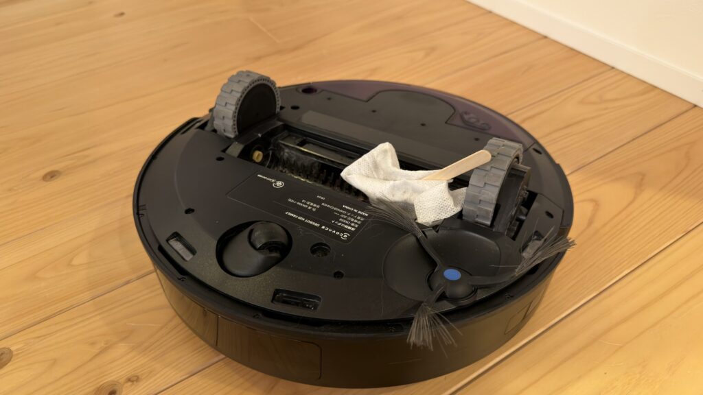 わが家のお手入れ頻度は、ざっくり月に1回程度。 もう一つの明確なサインがあって、それは「掃除機が迷子になり始めた時」です。センサー部分にホコリが溜まると動きが怪しくなるので、そのタイミングで確実にお手入れを実施しています。