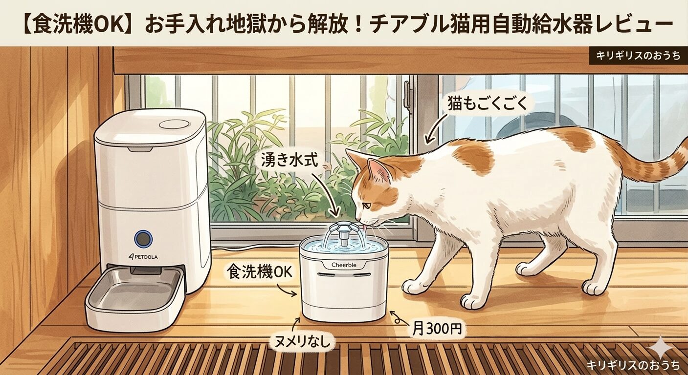 そんな共働き夫婦のワガママを完璧に叶えてくれる神アイテムに出会いました。それが、Cheerble(チアブル)の猫用自動給水器です。