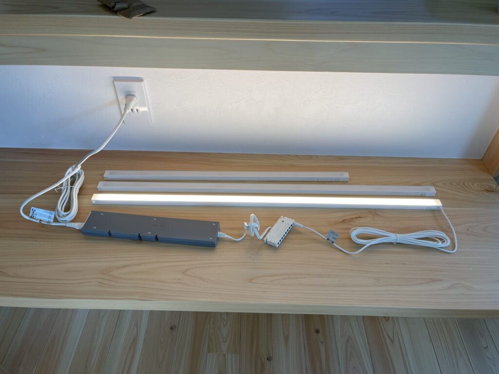 本来はキッチン用ですが、ドット感のない均一で美しいライン状の光、40/60/80cmという豊富なサイズ展開。まさに間接照明の光源として完璧なスペックでした。「キッチン用をリビングに流用する」という発想の転換が、わが家の窮地を救ってくれたのです。